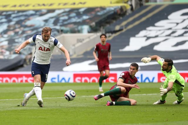 上半时后半段,热刺持续向狼队腹地施压。凯恩头球摆渡给孙兴慜,后者左肋突进后的射门略欠果断。本场没能破门,韩国人也无缘将个人英超连续进球的场次改写为4场;而摇摇欲坠的狼队防线,仍凭借科迪的两度门线救险,让凯恩的破门尝试再度无果。但事不过三的热刺队长,还是在半场结束前迎来进球:赫伊别尔中场附近送出挑传,凯恩杀入禁区,晃过帕特里西奥后抽射空门破网。本赛季第22球,来得着实不易。