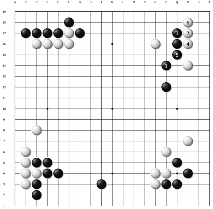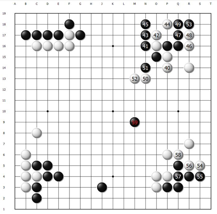 这样看来黑37或许应该飞在P14,向势地均衡的方向发展,这样依旧是一盘漫长的对局。